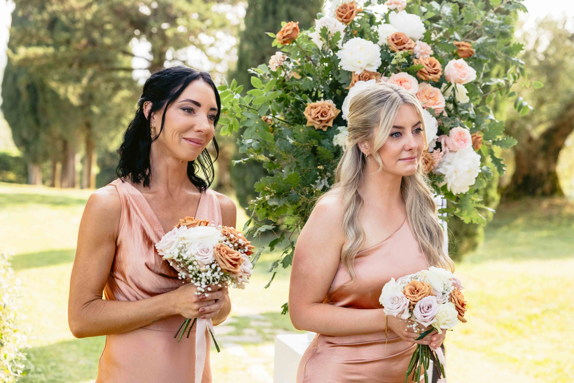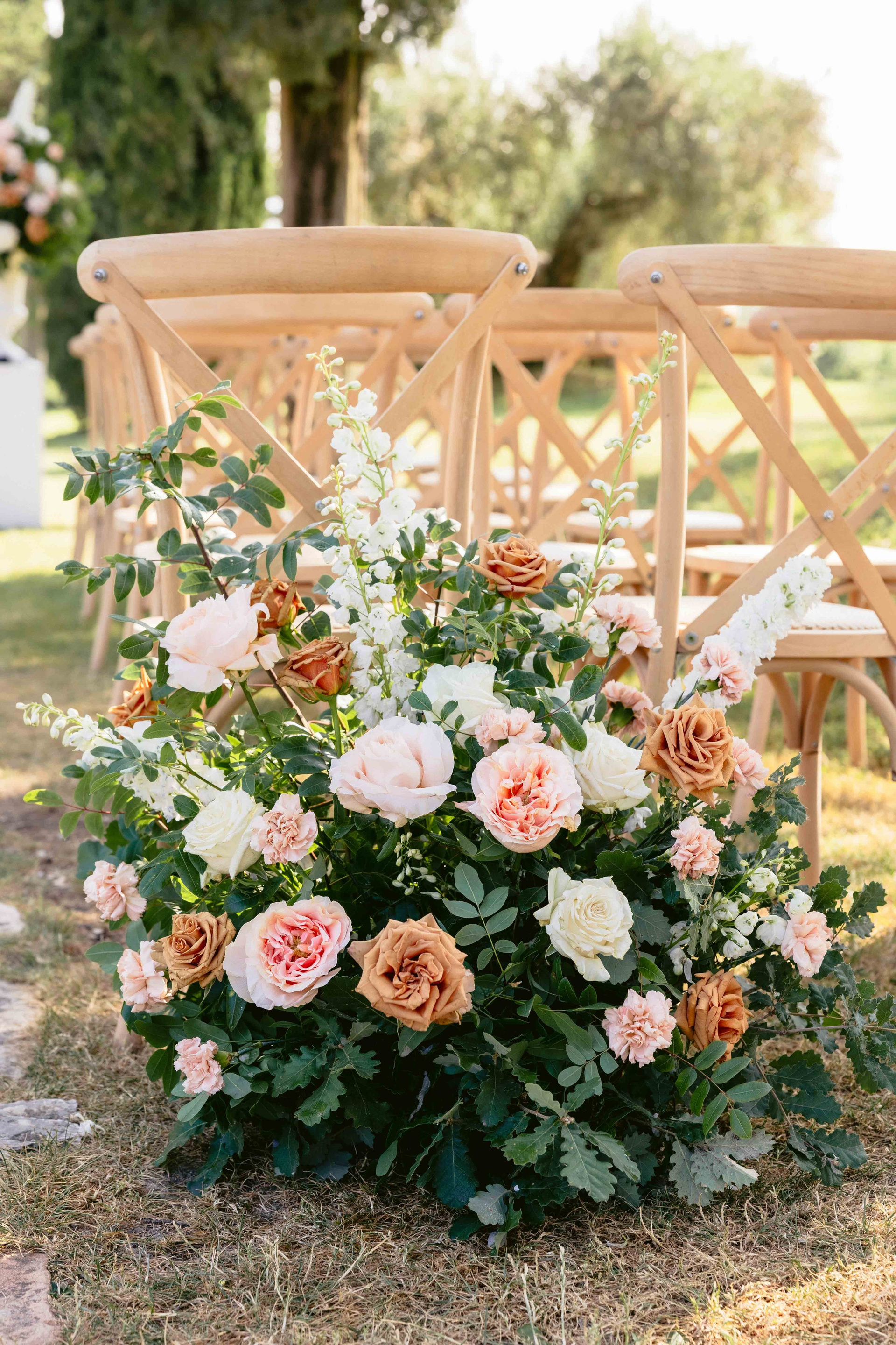 Sophie and David exchanged their vows surrounded by nature, with endless views of the countryside stretching behind them. The ceremony setup at Borgo Bastia Creti felt organic and elegant, blending seamlessly into the landscape.